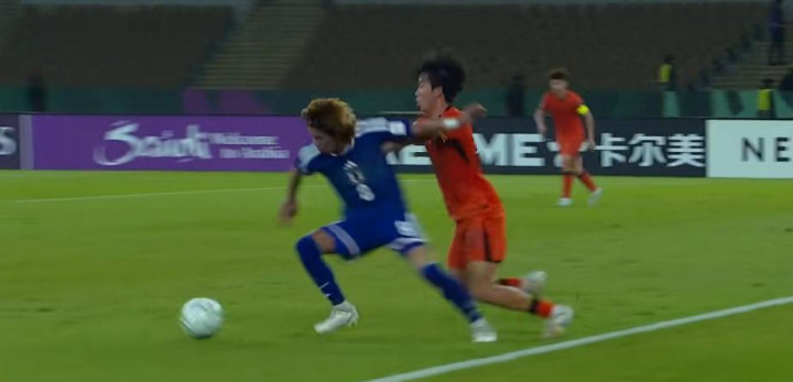 这就是青年世界杯的比赛中强度。这里还没有提到比赛中对手大量给到我方球员的双人包夹和三人包夹。“包夹”是常规操作,但包夹到位率奇高无比,成功率几乎100%,就是青年世界杯的比赛强度。U23国足的前卫和前锋在比赛打了快40分钟的时候,对日本U23给到的强度一直不适应,以至于长时间造成三线脱节。